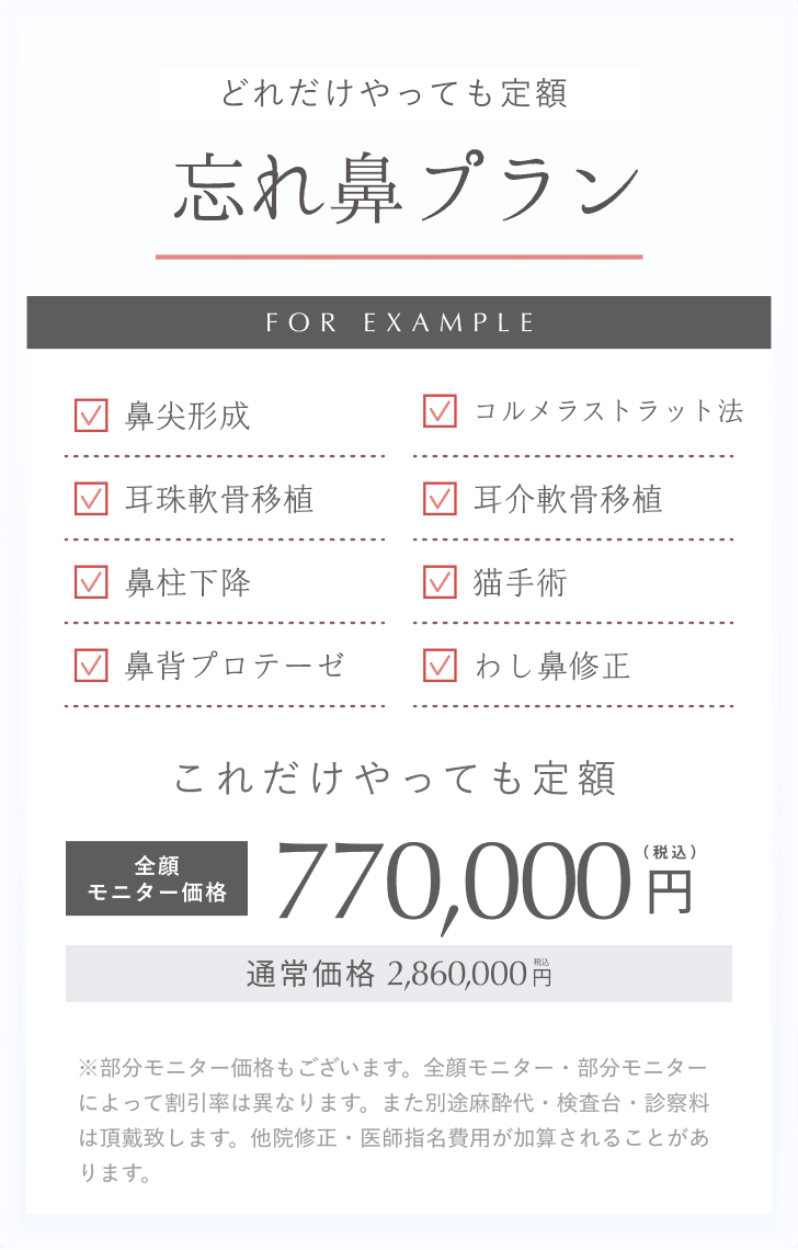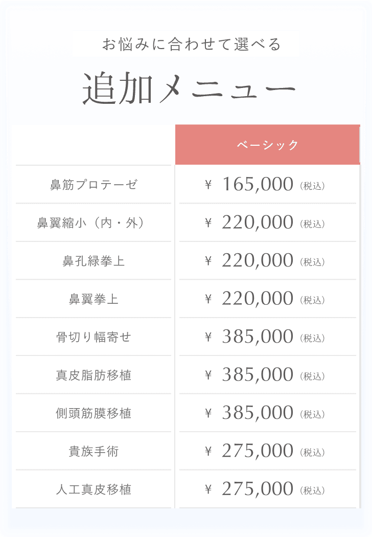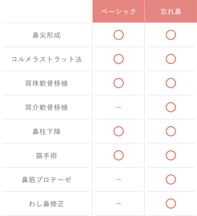 プロテーゼ・鼻尖形成・耳介耳珠軟骨移植・鼻柱下降・鼻翼縮小・鼻翼挙上